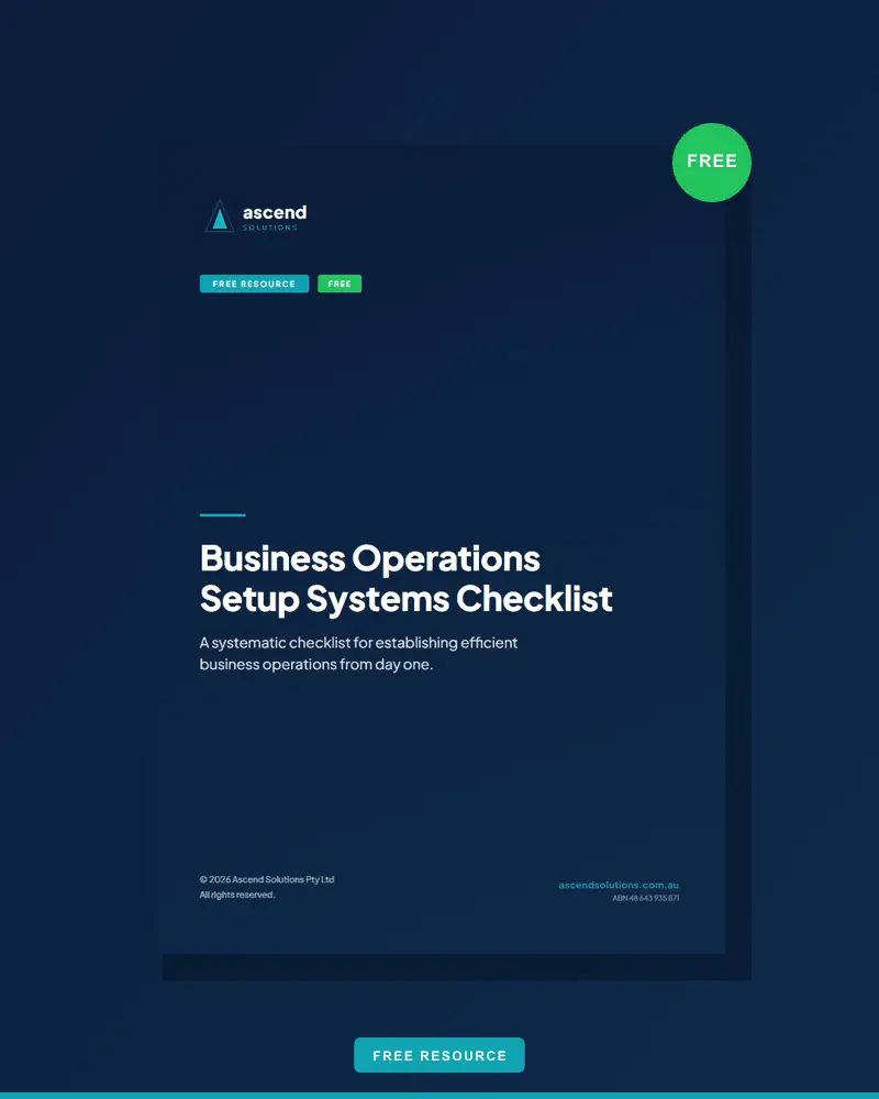 Business Operations Setup Systems Checklist — a practical resource for Australian small businesses. Professionally branded by Ascend.